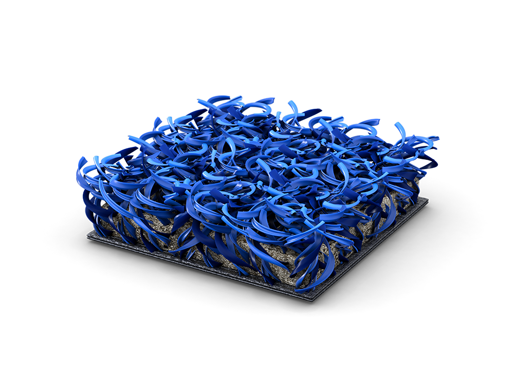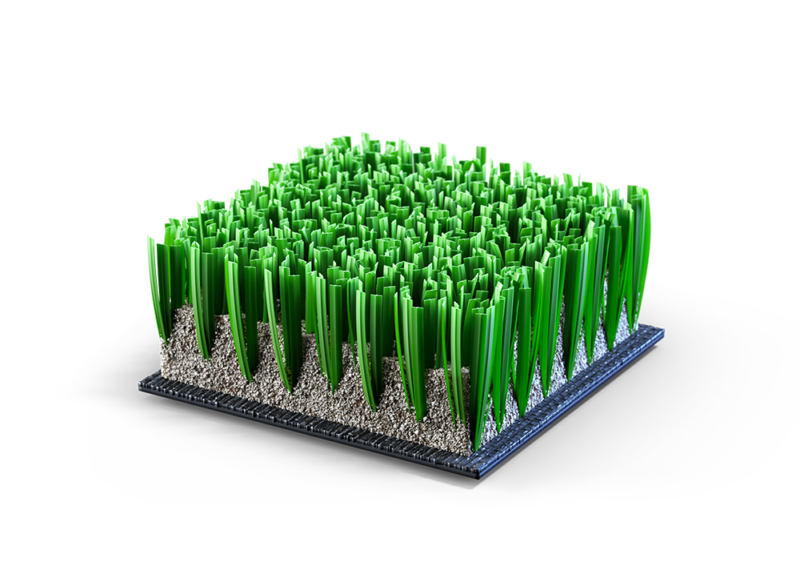 Système en gazon synthétique de dernière génération composé de monofilaments STX à structure droite avec nervure centrale et remplissage en sable siliceux.