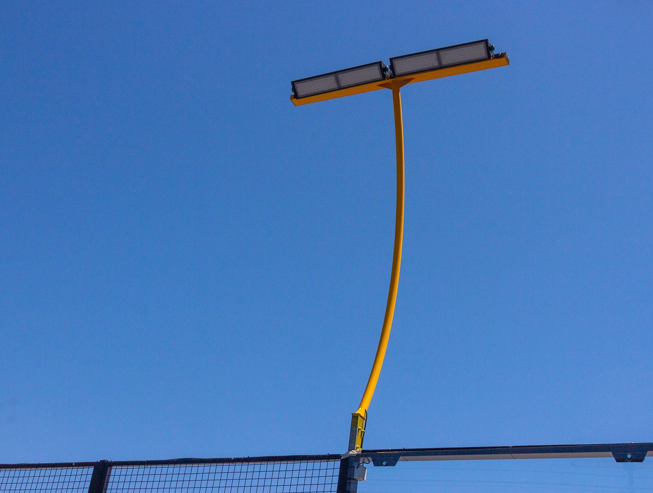Système d’éclairage en ligne garantissant une diffusion homogène sur toute la surface du terrain. Son design moderne réduit les ombres et améliore l’expérience de jeu.